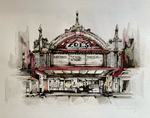 My ink drawings are created by simply using pens, ink and sometimes acrylic paint to add colour. These drawings have a cleaner finish than a monoprint and seek to capture the life in the details of buildings.